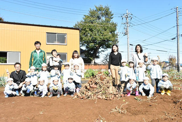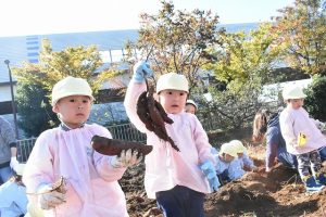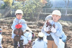 10月6日(水)芋ほり体験に行ってきました☆ 「大きいお芋が採れたよ~」と嬉しそうに教えてくれたり、 「こんなに採れたよ~」と元気いっぱいの園児達☆ 最後は皆で集合写真☆ ご協力いただいた保護者の皆様、お忙しい中ありがとうございました。 おかげさまでとても楽しい体験ができました。 Post navigationPreviousPrevious post:令和元年度 11月の園庭開放についてNextNext post:11月7日(木)