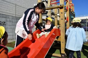 もも組の園庭遊びの様子です。 今日は天気も良く、心地いい日差しの中楽しく遊びました。 そら組のお兄さん、お姉さんも一緒に滑り台やかけっこをしてニコニコでした。 また一緒にお外で遊ぼうね! Post navigationPreviousPrevious post:11月29日(金)NextNext post:12月3日(火)