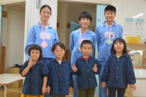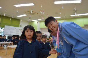 本日はめろん組の様子です。 たいよう組と一緒にしのは公園に遊びに行きました☆ 落ち葉を拾ったり、かけっこしたりたくさん遊びました。 青柳中学校のお兄さん、お姉さんがチューリップの球根を植えてくれました☆ 3daysは今日でおしまいです。 たくさん遊んでくれたお兄さん、お姉さん。「ありがとう」と感謝の気持ちを伝えてメダルを渡しました。 青柳中学校のみなさん、3日間ありがとうございました! Post navigationPreviousPrevious post:12月3日(火)NextNext post:12月5日(木)