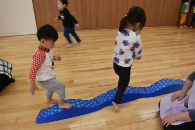 今日はめろん組でプチ体操教室を行いました。 先生と同じ動きをして準備体操☆ マット運動ではグルンとまわる感覚を教えてもらいました。 ケンケンパは順番守りながら上手に出来ました!! ウェイビーバランスではバランスよく渡れま…