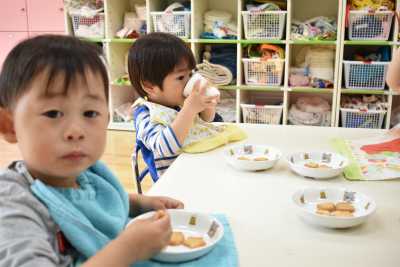 めろん組のおやつの様子です。 「おやつ、何かな~?」「いいにおい」と 毎日楽しみにしています! 今日のおやつはクッキー♪ 「お星様とハート!」とかわいい形に 食べる前から大興奮でした。 &nb…