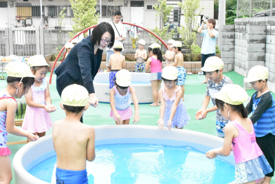 今日は休日保育です。 休日保育は、いつもと違って少人数の友達と保育士で密に関わり手厚い保育になります。 今日は、とても暑かったので散歩後に園庭で水遊びを楽しみました。 「キャーキャー」とはしゃぎながら、園庭中を走り回って…