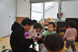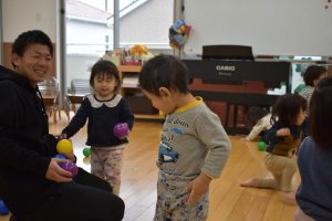 いちご組のプチ体操教室の様子です。 小さなボール投げて遊んで準備体操はバッチリ! ウェイビーバランスやケンケンパもとても上手になりました。 いちご組は体を動かして遊ぶのが大好きなので皆ニコニコでした。 Post navigationPreviousPrevious post:1月23日(木)NextNext post:1月29日(水)