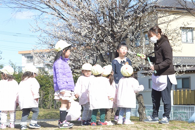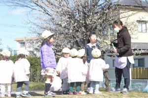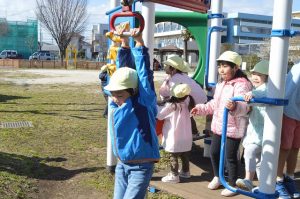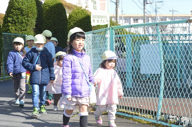 いちご組とたいよう組の散歩の様子です。 今日は仲良く手をつないで篠葉公園まで行きました。 たいよう組はまだ小さい、いちご組を気遣ってゆっくりと歩いていました。 公園でもとっても楽しそうに遊んでいました。 Post navigationPreviousPrevious post:2月17日(月)NextNext post:2月20日(木)