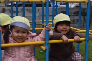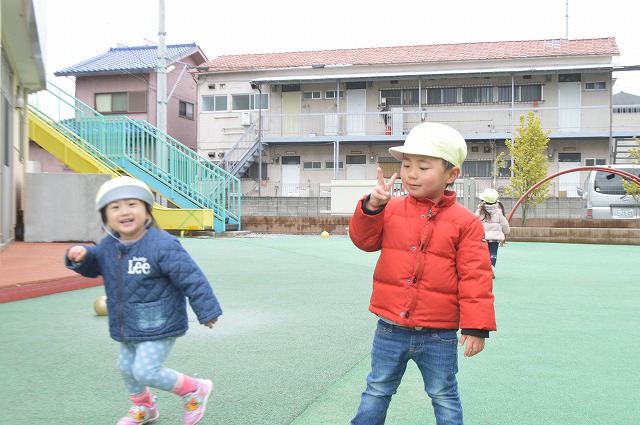 本日はいちご組の様子です。 園庭のジャングルジムで『こっちおいでー』とお友達を誘って一緒に遊んでました☆ すべり台についてる遊具ではお店屋さんごっこしたり、ボールで遊んだりしました☆ ☆とーっても可愛い双子コーデの二人☆ 明日も元気に遊ぼうね☆ Post navigationPreviousPrevious post:3月5日(木)NextNext post:3月9日(月)