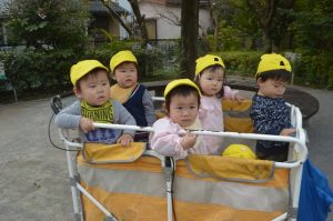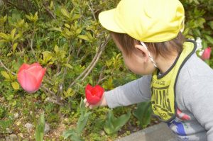 園周りを散歩して、お花や桜をみて「おー」と興味を持ってました☆