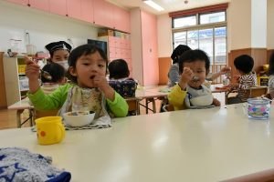 今日は保育部皆で園庭で元気よく走り、遊具で沢山遊びました☆ こいのぼりに興味深々でした。 こいのぼりには“子どもの健やかな成長を祈る”という意味があるそうです。 沢山食べて大きく成長して、元気いっぱいになってね☆ 頬張る姿が本当にかわいいですね♡ Post navigationPreviousPrevious post:4月22日(木)NextNext post:4月23日(木)