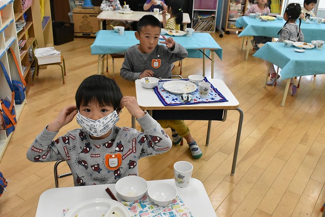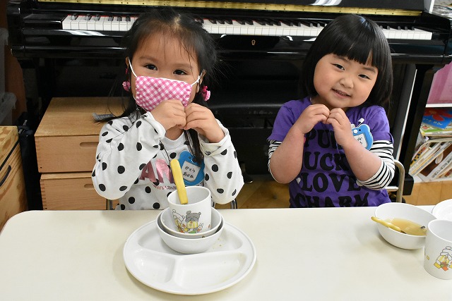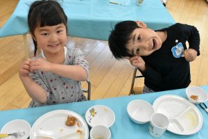 今日は幼稚部の給食の様子です☆ 大好きなから揚げをペロリと食べて「おいしかった」とニッコリ☻ カメラを向けると「一緒にハート💛しよう」とポーズをとる姿がとってもかわいいですね☆ 元気いっぱい沢山食べて大きくなってね☆ Post navigationPreviousPrevious post:4月23日(木)NextNext post:4月27日(月)