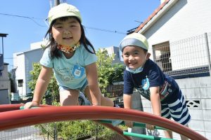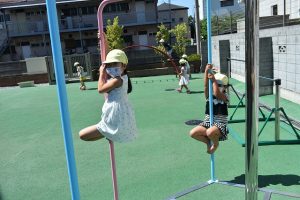 もも組の園庭遊びの様子です。 黄色いくまさんの帽子をみんなでかぶり、お外へ出ました。 保育園の遊具に興味津々な様子です。 そら組の園庭遊びの様子です。 太鼓橋や登り棒で沢山体を動かして元気に遊びました。 Post navigationPreviousPrevious post:6月9日(火)NextNext post:6月10日(水)