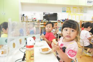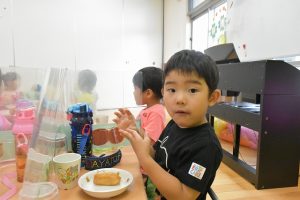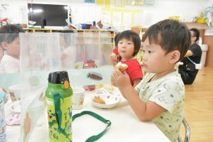 ほし組のおやつの様子です。 今日のおやつは「おいなりさん」でした。 皆「美味しい!」と言いながらパクパクと食べていました。 Post navigationPreviousPrevious post:7月15日(水)NextNext post:7月16日(木)