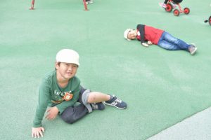 午前中は園庭の遊具で遊んだり、先生と一緒に“はないちもんめ”したりして遊びました☆