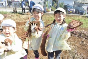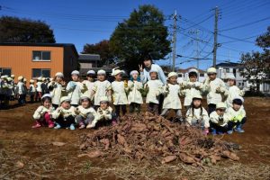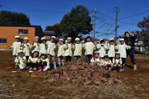 本日は楽しみにしていたお芋ほりの日でした☆ 朝からはりっ切っているお友だちも多く、畑に着いたら一生懸命次から次へと掘ってました♪ 「大きいお芋がとれたよ」と見せてくれました☆ 天気も良く、素晴らしい経験が出来した♪ 本日皆でとったお芋は持ち帰ります☆どんなメニューで食べるのかな☆ Post navigationPreviousPrevious post:11月2日(月)NextNext post:11月5日(木)