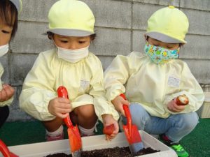 ほし組のチューリップの球根植えの様子です。 園長先生と移植ごてを使って、楽しく植えていました。 咲く頃が楽しみですね♪ Post navigationPreviousPrevious post:11月12日(木)NextNext post:11月13日(金)