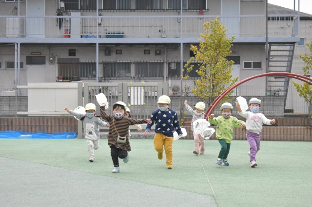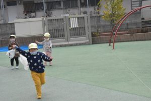 めろん組の様子です☆ 園庭で凧を飛ばして遊びました♪ シールとペンを使って模様を描いて、丑の凧を高くあげようと たくさん走っていました♪ Post navigationPreviousPrevious post:12月24日(木)NextNext post:12月28日(月)