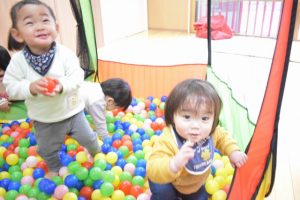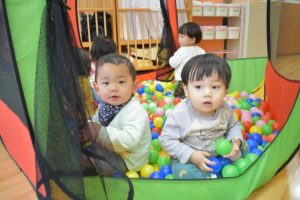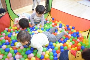 もも組の様子です☆ お部屋でボールプールをしました♪ みんなで寝転がってボールで顔を隠し、ばあ!と起き上がって 顔を見合わせると笑い合い楽しそうに遊んでいました♪ Post navigationPreviousPrevious post:1月15日(金)NextNext post:1月20日(水)