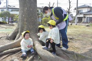 もも組の様子です☆ 八幡コミセンにお散歩へ行きました♪ 珍しい大きな木の根に、みんな大興奮でした♪ Post navigationPreviousPrevious post:3月18(木)NextNext post:3月19日(金)