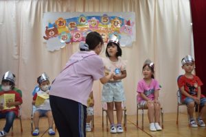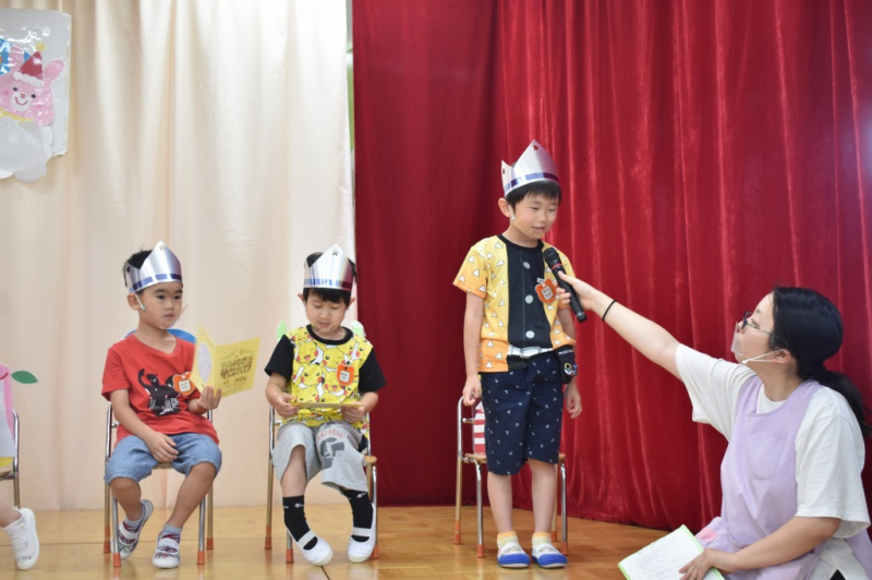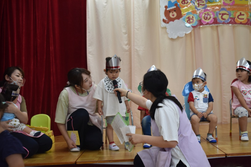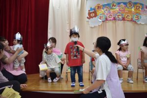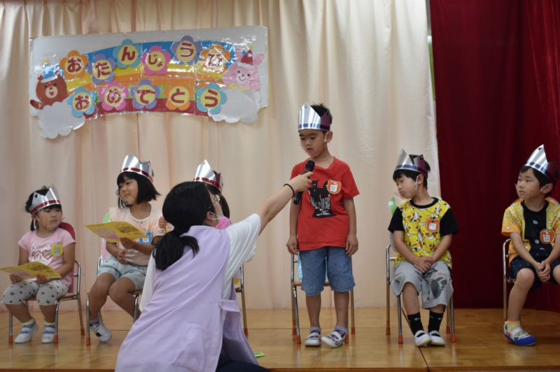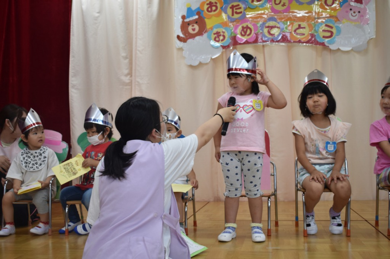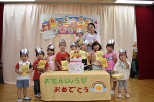 6月生まれのお友達のお誕生日会を行いました☆ 好きな食べ物や、好きな遊びを先生が質問したところ、 「バナナ」や「ブロック」など上手に答えてました♪ お誕生月のお友達と一緒に手品をやり、皆で楽しみました☆ Post navigationPreviousPrevious post:6月29日(火)NextNext post:7月2日(金)