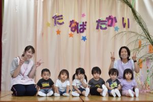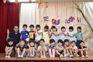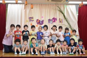 七夕会を行いました☆ 今日は一年に一度織姫と彦星が会える日ですね☆ 先生から❝七夕の由来❞のお話を聞いた後はクイズに大盛り上がり♪ 各クラスの七夕制作を発表!! たいよう組は代表のおともだちに発表してもらいました♪ 最後は皆で記念写真♪ ☆皆の願い事がかなうといいね☆ Post navigationPreviousPrevious post:7月6日(火)NextNext post:7月8日(木)