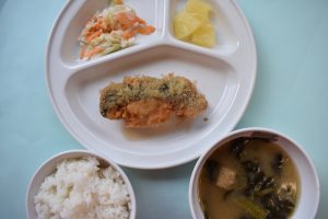 ~今日の給食~ ・鮭のフライ ・コールスローサラダ ・ごはん ・ほうれん草と油揚げのみそ汁 ・パイン ~今日のおやつ~ ・牛乳 ・ジャムサンド Post navigationPreviousPrevious post:7月20日(火)NextNext post:令和3年度 七夕集会