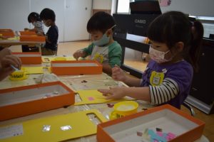ほし組の様子です☆ 千歳飴袋を自分たちで制作しました!!先生が作ったお手本を見ながら のりを使って上手に作っていました☆ Post navigationPreviousPrevious post:11月2日(火)NextNext post:11月4日(木)