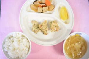 ~今日の給食~ ・鶏肉の青のり焼き ・高野豆腐と野菜の含め煮 ・ごはん ・キャベツともやしのみそ汁 ・もも ~今日のおやつ~ ・マシュマロコーンフレーク ・牛乳 Post navigationPreviousPrevious post:11月8日(月)NextNext post:11月9日(火)