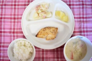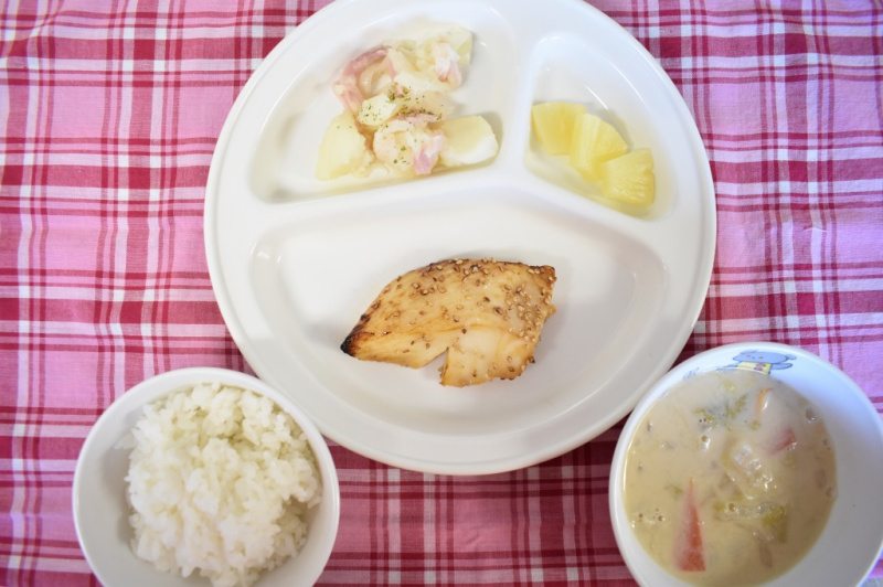 12月152021にじいろ給食ブログ~ 今日の給食 ~ ・カレイのごま照り焼き ・ジャーマンポテト ・ごはん ・和風豆乳スープ ・パイン ~ 今日のおやつ ~ ・牛乳 ・もちもちドーナツ Post navigationPreviousPrevious post:12月14日(火)NextNext post:12月15日(水)