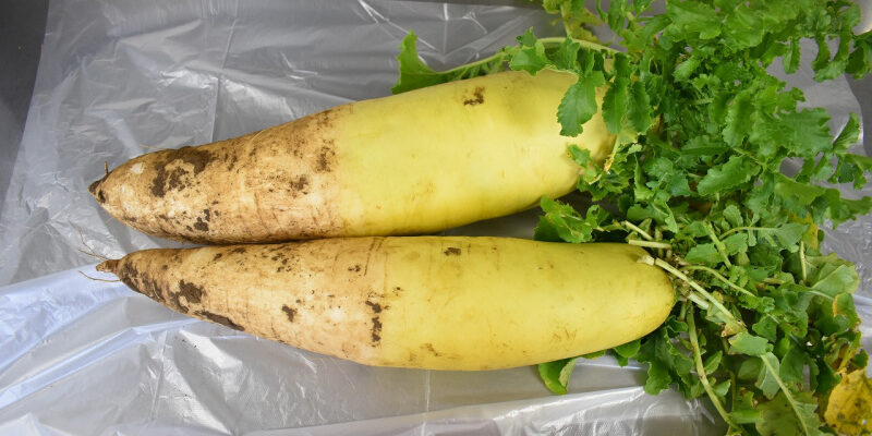 姉妹園の「草加あおぞら保育園」で収穫をした、大根を貰いました。