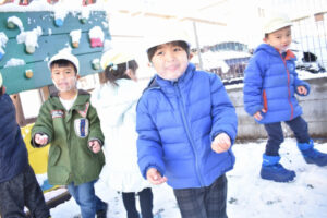 本日も雪遊びの様子です☆ 園長先生も雪合戦に参加してました!! 雪を集めるのに競い合いながらみんなで楽しく遊びました♪ そのころもも組は、室内遊びでみんなで仲良く遊びました♪ Post navigationPreviousPrevious post:1月6日(木)「七草」NextNext post:1月7日(金)