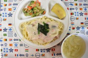 1月112022にじいろ給食ブログ~ 今日の給食 ~ ・クリームスパゲティー ・ブロッコリーとツナのサラダ ・野菜のスープ ・バナナ ~ 今日のおやつ ~ ・牛乳 ・ごま塩おにぎり Post navigationPreviousPrevious post:1月8日(土)NextNext post:1月12日(水)