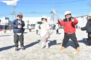 本日は避難訓練うを行いました。 先生の言う事をよく聞いて素早く非難することができました。 そのあとはふれあい公園に自分たちで作った凧揚げをして遊びました☆ 自作の凧揚げは本日お持ち帰りします。たくさん遊んでね☆ Post navigationPreviousPrevious post:1月12日(水)NextNext post:1月13日(木)