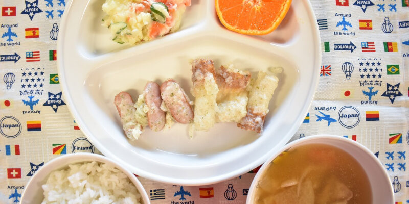 1月172022にじいろ給食ブログ~ 今日の給食 ~ ・ちくわとウインナーの磯部揚げ ・ポテトサラダ ・ごま塩ごはん ・豚汁 ・みかん ~ 今日のおやつ ~ ・牛乳 ・お麩ラスク Post navigationPreviousPrevious post:1月17日(月)NextNext post:1月18日(火)