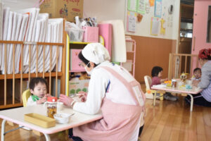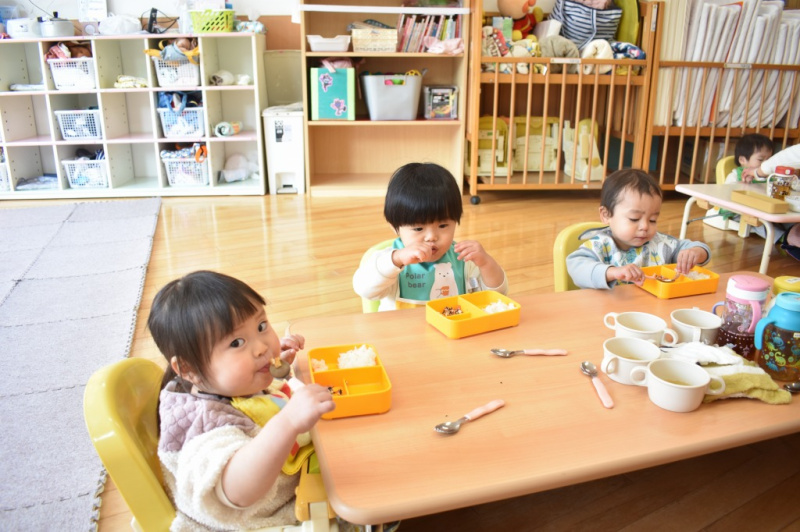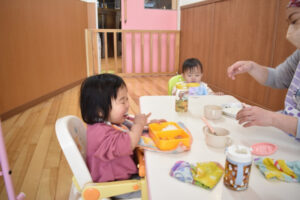 もも組の給食の時間の様子です☆ 今日は唐揚げでした!! 自分で食べることが上手になって、モグモグ食べてました♪ Post navigationPreviousPrevious post:2月3日(木)「豆まき 行事食」NextNext post:2月4日(金)