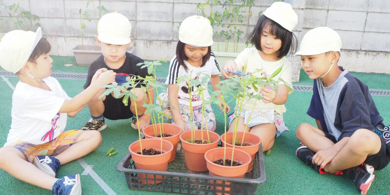 カレーパーティー等の体験クッキングや芋ほり・お餅つきと食に関する様々な行事を行ってきました。その中で、食材を見て、触れて、子ども達は食に対して興味をもつことが出来ました。特にたいよう組は、オクラを自分で育てて収穫をし、食べたことがとても楽しかったようです。「すごくおいしい」と目をキラキラさせながら食べていました。
