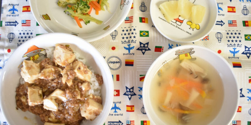 6月12022にじいろ給食ブログ~ 今日の給食 ~ ・マーボー豆腐丼 ・ブロッコリーと人参のごま和え ・春雨スープ ・パイン ~ 今日のおやつ ~ ・牛乳 ・マカロニきな粉 Post navigationPreviousPrevious post:6月1日(水)NextNext post:6月2日(木)