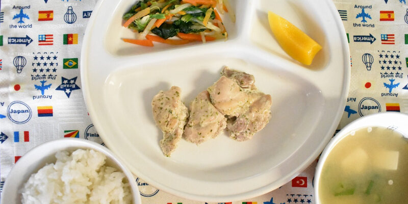 草加にじいろ保育園は完全自園調理給食、園庭開放と子育て講座で地域交流、看護師常駐の体調不良児対応保育園です。