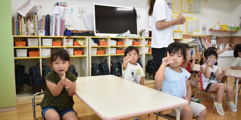 保育園では、食具の持ち方を「バンバン持ちだよ」と教えています。