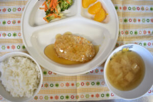 7月12022にじいろ給食ブログ~ 今日の給食 ~ ・切り干し大根のハンバーグ ・ブロッコリーと人参のゆかり和え ・ごはん ・キャベツと油揚げのみそ汁 ・みかん ~ 今日のおやつ ~ ・牛乳 ・冷やしたぬきうどん Post navigationPreviousPrevious post:6月29日(水)NextNext post:7月4日(月)