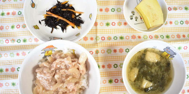 7月282022にじいろ給食ブログ~ 今日の給食 ~ ・豚丼 ・ひじき煮 ・ほうれん草と油揚げのみそ汁 ・バナナ ~ 今日のおやつ ~ ・牛乳 ・ポテトフライ Post navigationPreviousPrevious post:7月26日(木)NextNext post:7月29日(金)