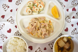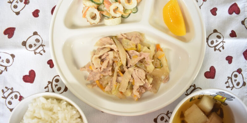 8月52022にじいろ給食ブログ~ 今日の給食 ~ ・豚肉とキャベツのみそ焼き ・ちくわときゅうりの和え物 ・ごはん ・お麩とわかめのすまし汁 ・もも ~ 今日のおやつ ~ ・牛乳 ・りんごゼリー ・ウエハース Post navigationPreviousPrevious post:8月5日(金)NextNext post:8月6日(土)