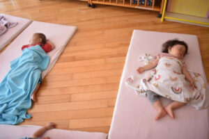 本日はもも組の様子です☆ お昼ご飯を食べた後のお昼寝の様子です。 生活リズムを整えるために「お昼寝」と「それ以外の時間」を大切にして日々過ごしております。 Post navigationPreviousPrevious post:9月9日(金)「お月見メニューとお月見団子づくり」NextNext post:9月12日(月)