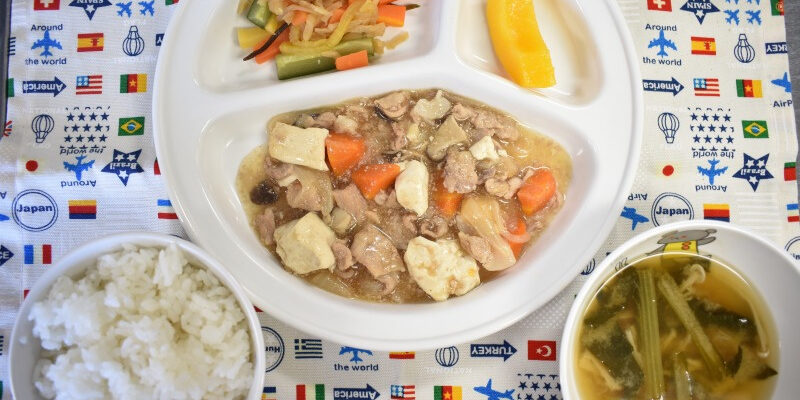 9月212022にじいろ給食ブログ~ 今日の給食 ~ ・肉豆腐 ・カミカミサラダ ・ごはん ・小松菜とえのきのみそ汁 ・もも ~ 今日のおやつ ~ ・麦茶 ・レアヨーグルトケーキ Post navigationPreviousPrevious post:9月21日(水)NextNext post:9月22日(木)
