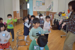 本日はそら組の様子です☆ 英語教室がありました。10月はハロウィンの内容が多く、先生の真似っこしてジェスチャーしながらリズムに合わせて楽しく学びました。 Post navigationPreviousPrevious post:10月20日(木)NextNext post:10月21日(金)