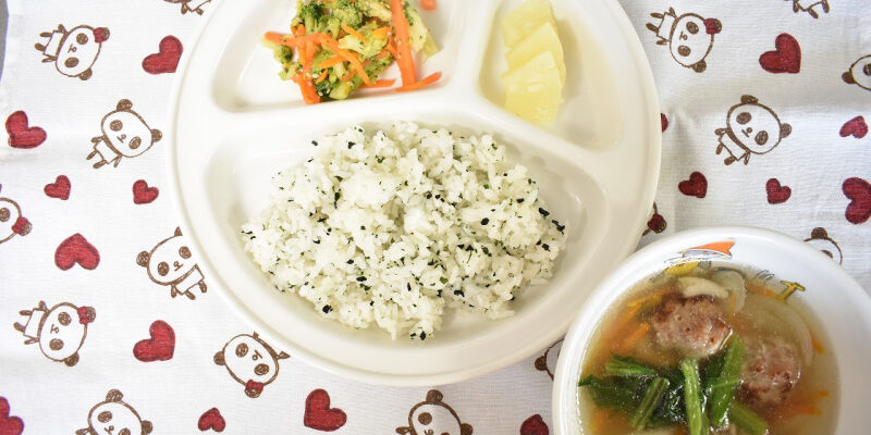 10月252022にじいろ給食ブログ~ 今日の給食 ~ ・肉団子のスープ ・ブロッコリーと人参のごま和え ・わかめごはん ・パイン ~ 今日のおやつ ~ ・牛乳 ・ぶどうゼリー ・ビスケット Post navigationPreviousPrevious post:10月24日(月)NextNext post:10月25日(火)「そら組:箸の練習」