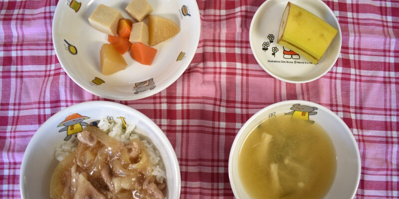 11月42022にじいろ給食ブログ~ 今日の給食 ~ ・豚丼 ・高野豆腐と野菜の含め煮 ・わかめとえのきのみそ汁 ・バナナ ~ 今日のおやつ ~ ・牛乳 ・クッキー Post navigationPreviousPrevious post:11月4日(金)NextNext post:11月7日(月)