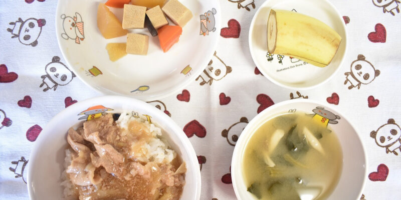 1月252023にじいろ給食ブログ~ 今日の給食 ~ ・豚丼 ・高野豆腐と野菜の含め煮 ・ほうれん草としめじのみそ汁 ・バナナ ~ 今日の給食 ~ ・牛乳 ・ラスク Post navigationPreviousPrevious post:1月20日(金)NextNext post:お知らせ
