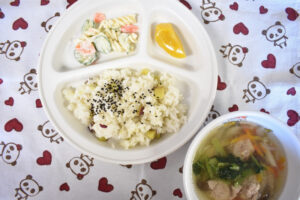 1月312023にじいろ給食ブログ~ 今日の給食 ~ ・肉団子スープ ・マカロニサラダ ・さつまいもごはん ・もも ~ 今日のおやつ ~ ・麦茶 ・レアヨーグルトケーキ Post navigationPreviousPrevious post:1月31日(火)NextNext post:2月1日(水)