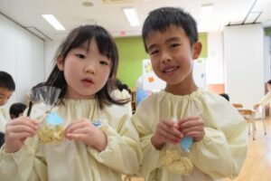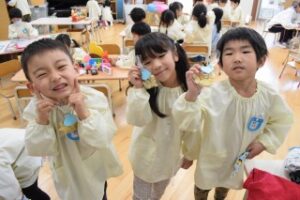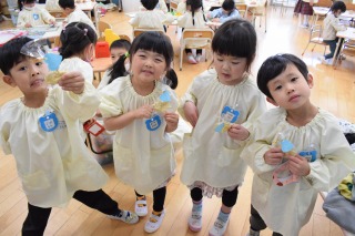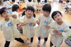 今日はそら組さんの様子です! ホワイトデー製作をしました☆ 紙粘土で自分の好きな形に型を取り、クッキーを作りました! 製作中、「作り終ったらパパにあげるんだ~!」「私はお部屋に飾ろう!」とあげる人の気持ちを考え、ワクワクしながら製作に取り組んでいました♪ Post navigationPreviousPrevious post:3月14日(火)NextNext post:3月15日(水)