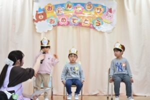 好きな遊びや好きな食べ物を聞かれて堂々と答えることができていました。