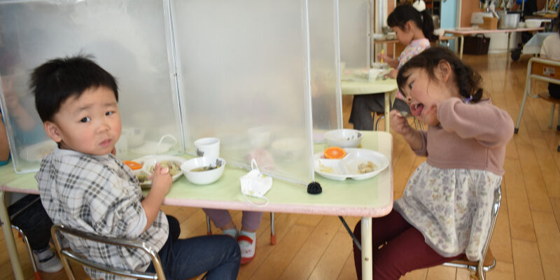 食べる量が増え、おかわりをする子がたくさんいます。また、箸の使い方・食べる時のマナーなども友だちと教え合いながら食べ、とても上手になりました。