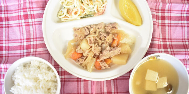 4月112023にじいろ給食ブログ~ 今日の給食 ~ ・肉じゃが ・スパゲティーサラダ ・ごはん ・高野豆腐としめじのみそ汁 ・もも ~ 今日のおやつ ~ ・牛乳 ・お麩ラスク Post navigationPreviousPrevious post:4月11日(火)NextNext post:4月12日(水)